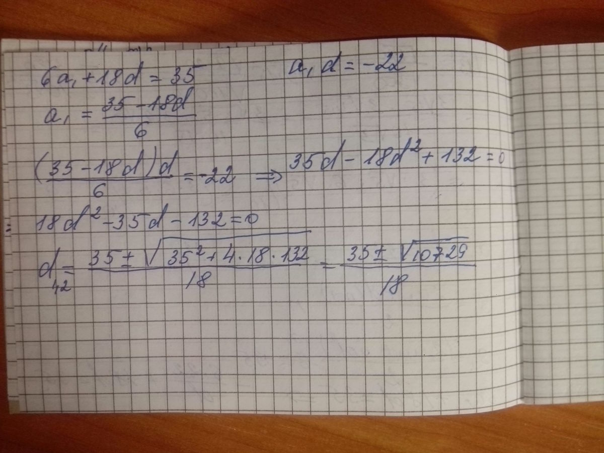 произведение первого члена убывающей арифметической прогрессии на ее разность равно минус22 а сумма первых семи ее членов равна 35 начиная с какого номера члены этой прогрессии отрицательны?