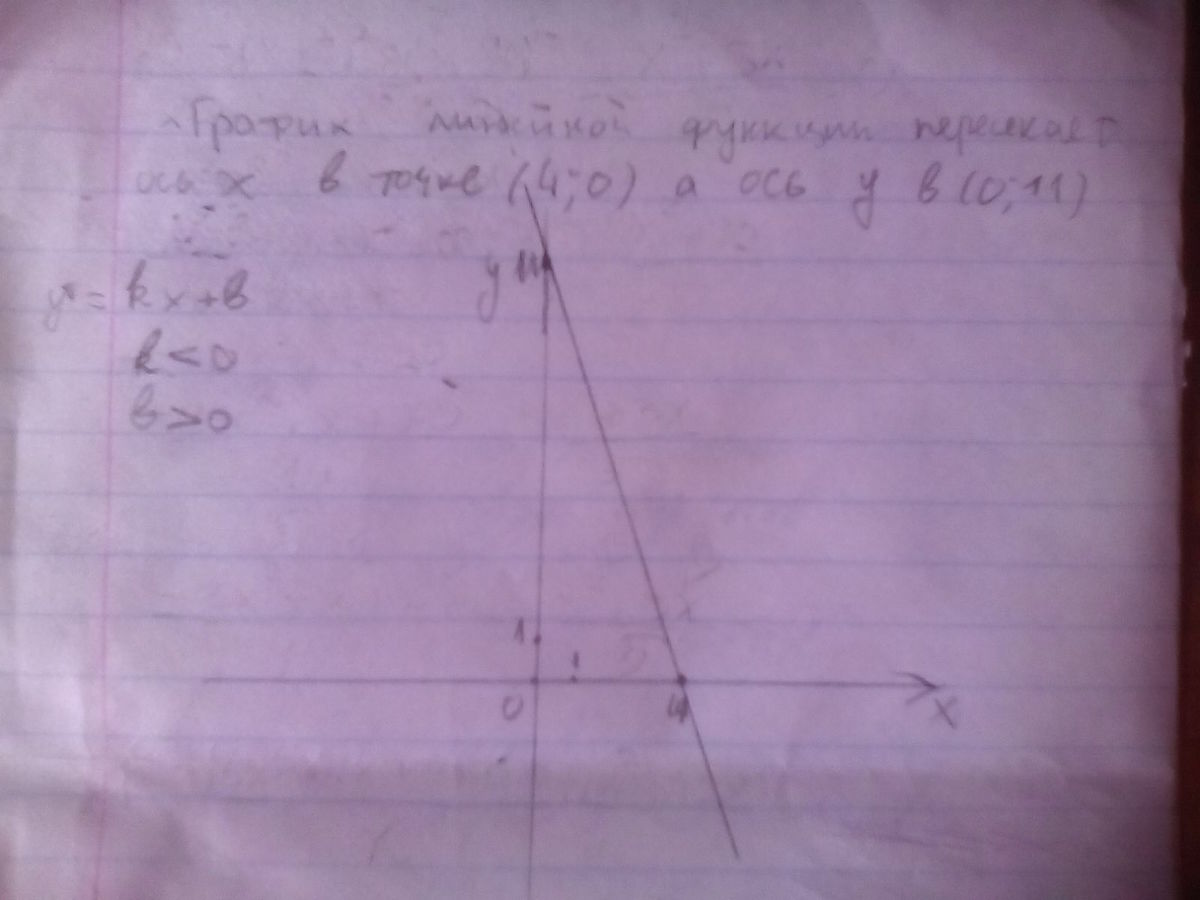 График линейной функции пересекает ось Х в точке с абсциссой 4, а ось Y - в точке с ординатой 11. Задайте эту функцию формулой.