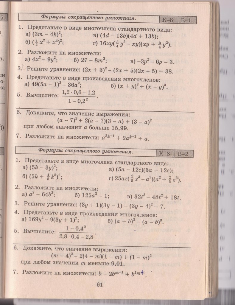 Умоляю! Решите пожалуйста второй вариант (Формулы сокращенного умножения) 7класс
