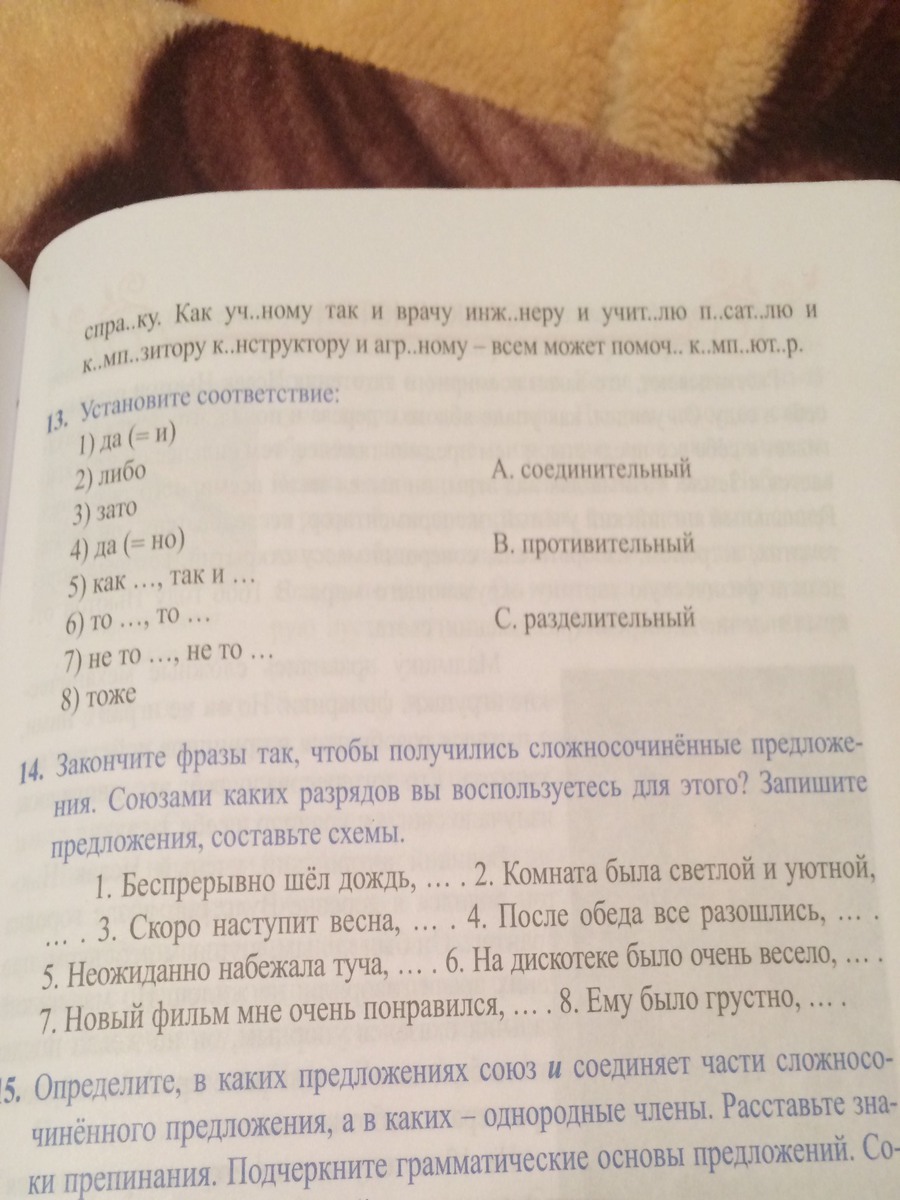 1) Беспрерывно шёл дождь, и солнце не торопилось показаться из-за туч.. 2) Комната была светлой и уютной, но мне все равно больше нравилось у себя дома. 3) Скоро наступает весна, и грачи уже летят в родные края. 4) После обеда все разошлись, однако мать осталась домывать посуду. 5) Неожиданно набежала туча, и стало очень холодно. 6) На дискотеке было очень весело, но Оля сегодня не стремилась танцевать. 7) Новый фильм мне понравился, и я советую тебе его посмотреть. 8) Ему было грустно, но он старался не показывать своего настроения окружающим.
