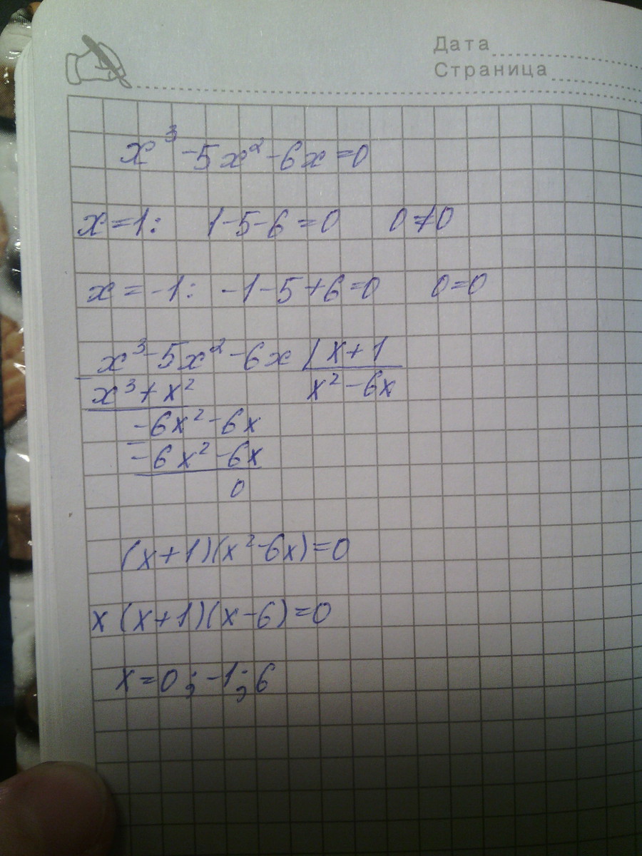 Получается (x+1)(x^2-6x)=0