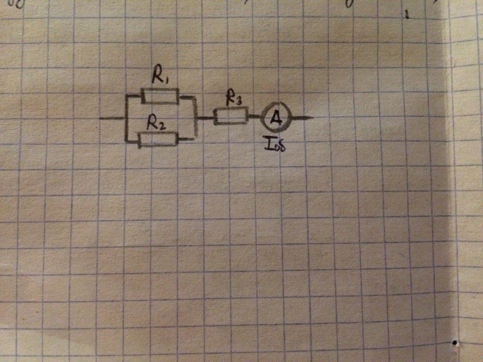 На рисунке дана схема соединения трех резисторов: R1= 10 Ом, R2= 40 Ом, R3=32 Ом. По какому резистору протекает ток наибольшей мощности? Определить общую мощность, потребляемую цепью, если Iоб (общая сила тока) = 2,5 A