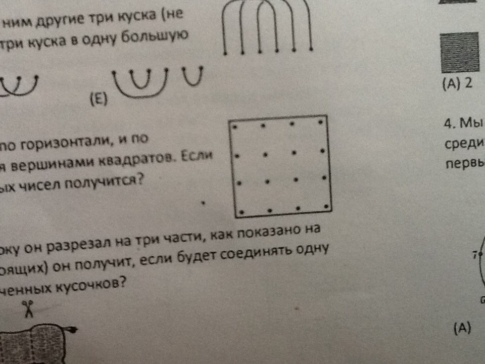 Помогите пожалуйста.Расстояние между соседними точками на рисунке и по горизонтали,и по вертикали одинаковы.Некоторые четверки этих точек являются вершинами квадратов.Если мы вычислим площадь каждого такого квадрата,сколько разных чисел получится?