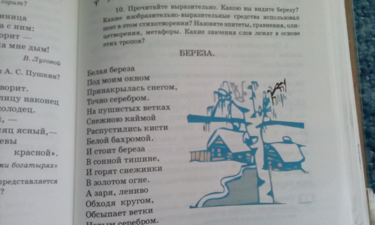 Вторая строка («Под моим окном») очерчивает поэтическое пространство произведения, подчеркивает, что образ березы является близким и понятным каждому человеку.