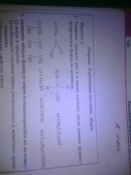 Укажите,сколько раз и в каких случаях среди данных формул встречается формула метанола