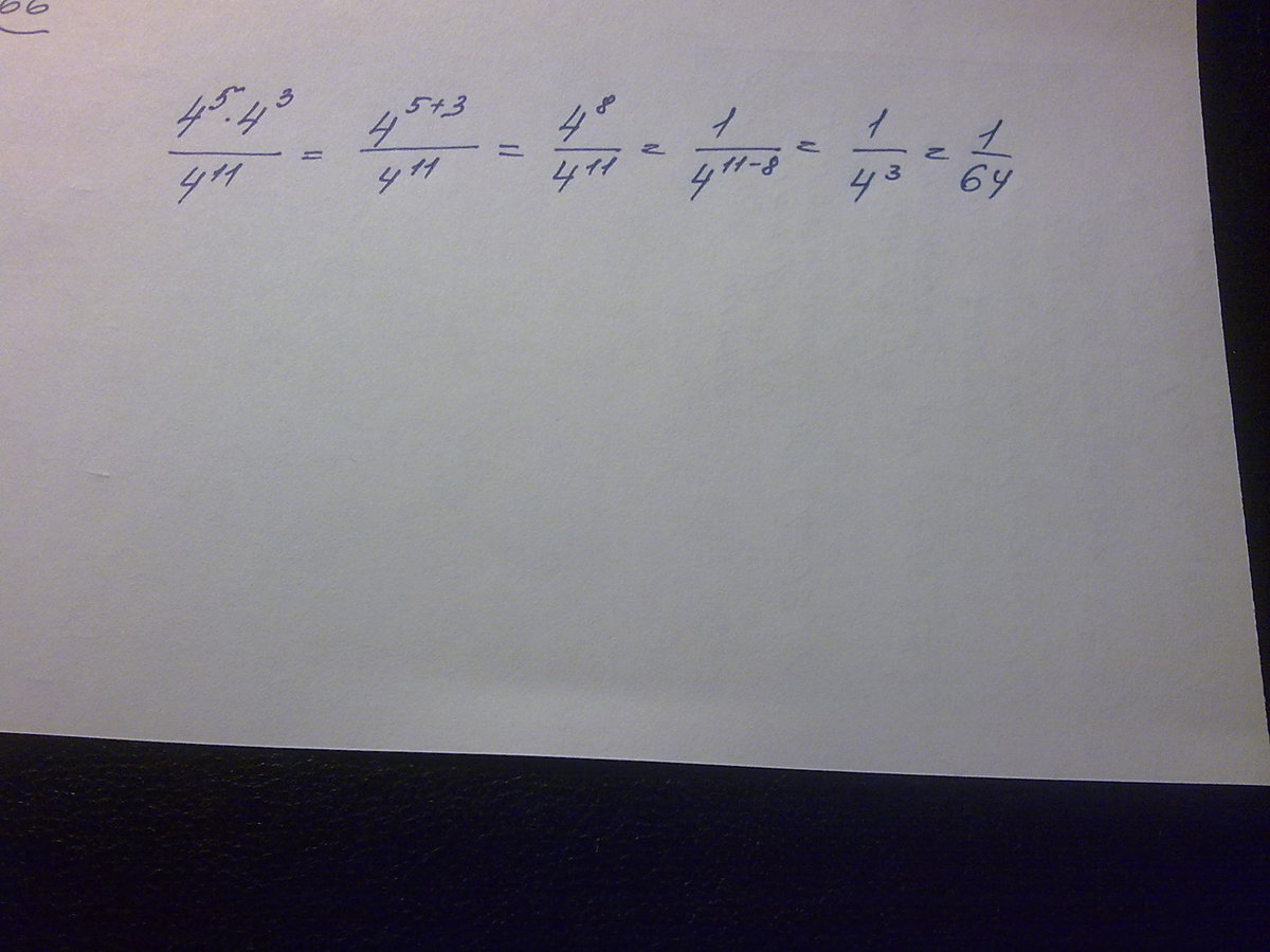 Найдите значение выражения: 4 в пятой степени умножить на 4 в третьей степени и разделить на 4 в одиннадцатой степени