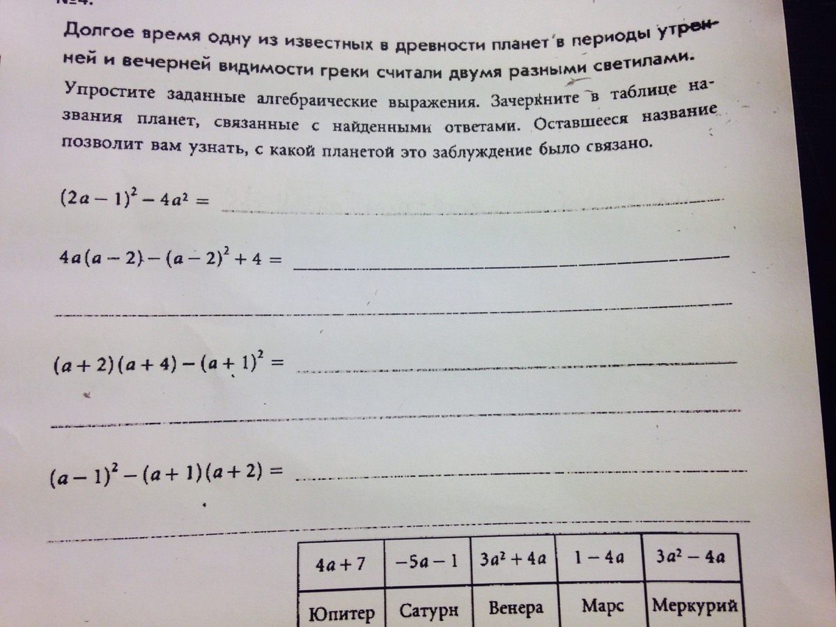 (а+2)(а+4)-(а+1)^2=а^2+4а+2а+8-а^2-2а-1=4а+7