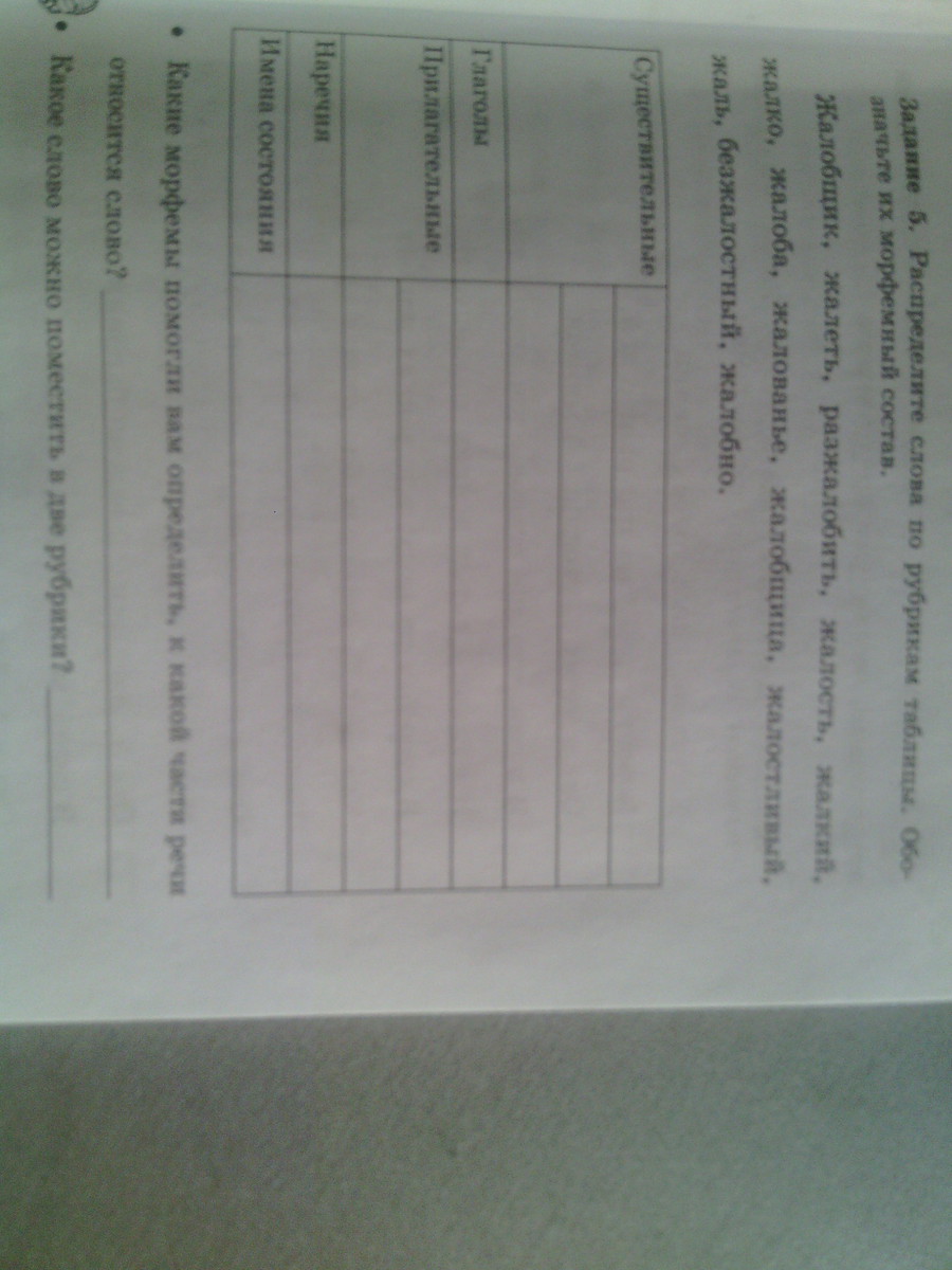 задание 5.распределите слова по рубрикам таблицы.обозначте их морфемный состав