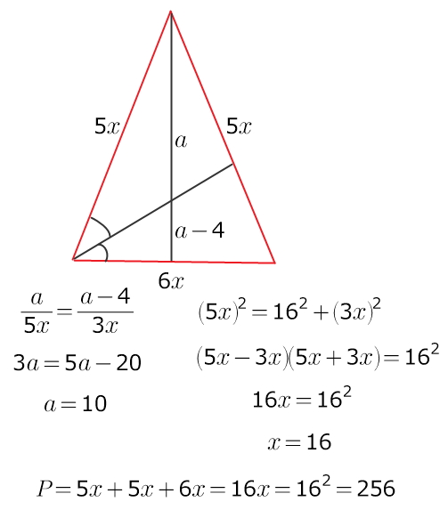 Боковая сторона равнобедренного треугольника относится к основанию, как 5:6. Биссектриса угла при основании треугольника делит высоту, проведенную к основанию на отрезки, разница между которыми 4 см. Найди периметр треугольника.
