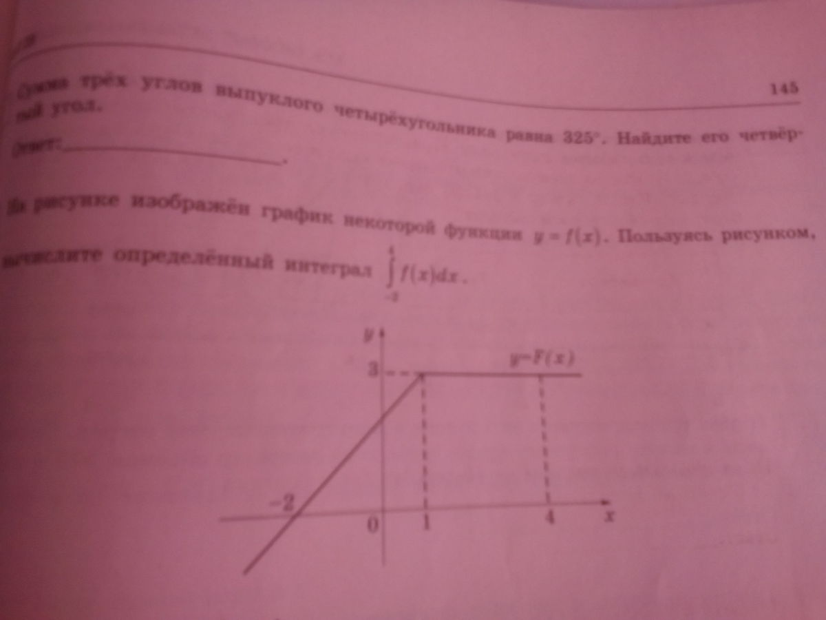 на рисунке изображен график некоторой функции у=f(x). Пользуясь рисунком, вычислите определённый интеграл -2 до 4 f(x)dx.