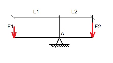 См. Рисунок. Рычаг находится в равновесии по причине равенства моментов, которые создают эти силы относительно точки опоры рычага (точка А). Момент силы равен произведению силы на плечо, на котором действует эта сила. Плечо это расстояние от линии действия силы до точки, вокруг которой сила пытается повернуть тело. Значит момент силы F1 будет равен M1 = F1*L1. Момент M2 = F2*L2. Эти моменты равны по модулю, но направлены в разные стороны. Значит можно записать, что М1 = М2. Или F1*L1 = F2*L2. Отсюда L2 = F1*L1/F2 = 5*16/8 = 10.