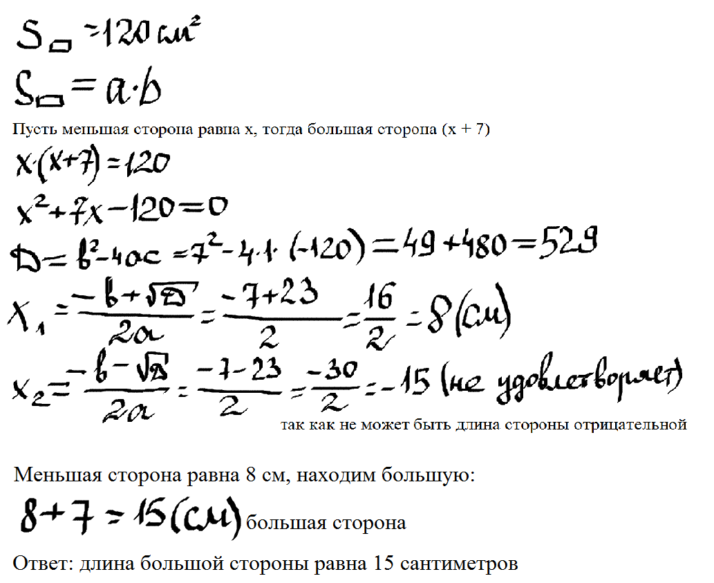 Найдите его большую сторону ,если она на 7 больше меньшей стороны.