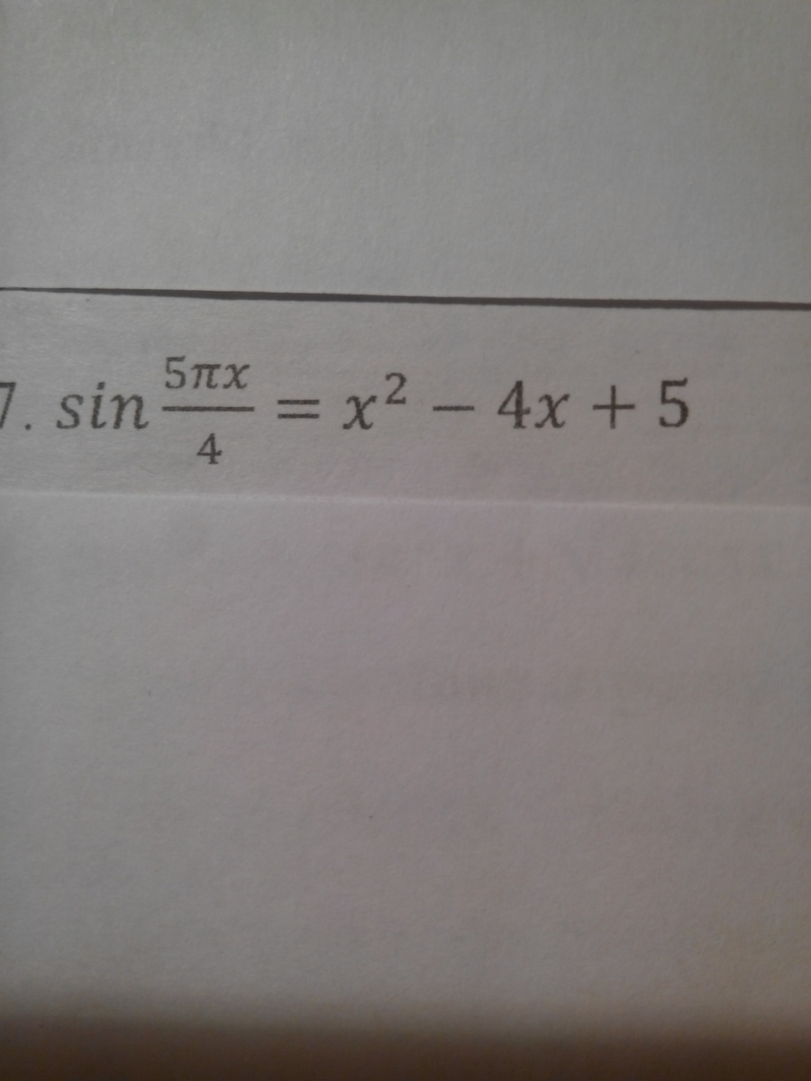 Вершина параболы, заданной квадратным трехчленом в правой части находится в точке (2,1), т.е. выражение справа всегда больше или равно 1. А выражение слева всегда меньше или равно 1. Значит равенство может быть только при x=2. Проверка показывает, что да, при x=2 будет верное равенство. Значит ответ. x=2.