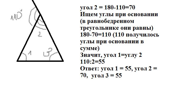 Сделав проверку 55+55+70 = 180 (сумма углов в треугольнике)