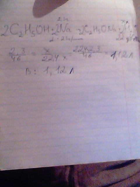 Натрій масою 2.3 г. умістили в етанол. Який об'єм водню виділився?