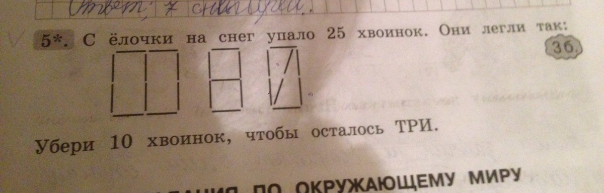 Убери 10 хвоинков,чтобы осталось ТРИ.