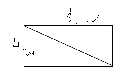 площадь треугольника = 4 * 8 / 2 = 16 см²