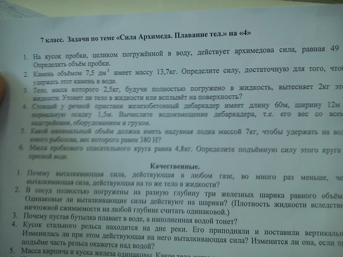 2 задачу. Камень объемом 7.5дм кубе имеет массу 13.7кг.Оаредилите силу,для того чтобы удержать этот камень на воде.