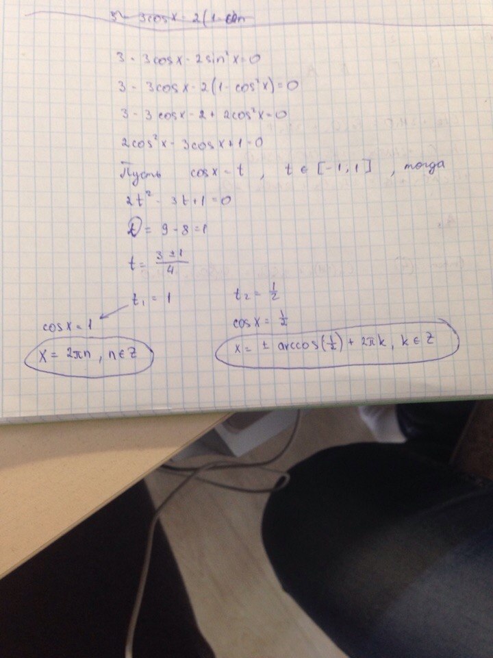 3 - 3 cos x -2 sin^2 x = 0