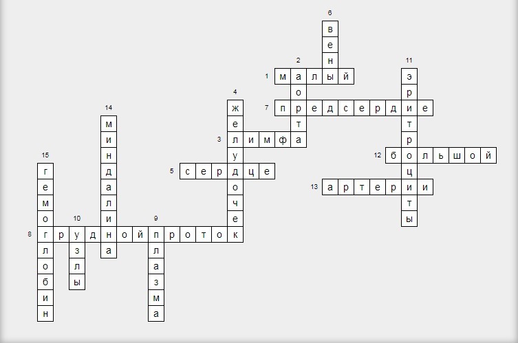 помогите составить кроссворд по биологии для 8 класса на тему кровеносная и лимфатическая системы