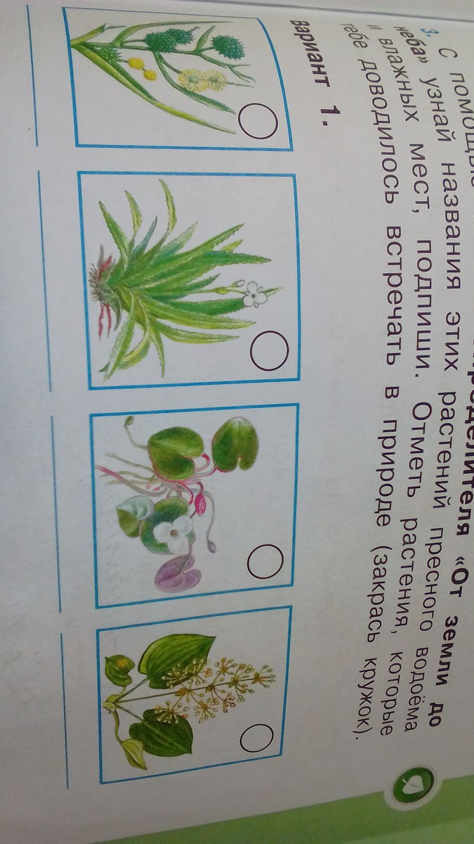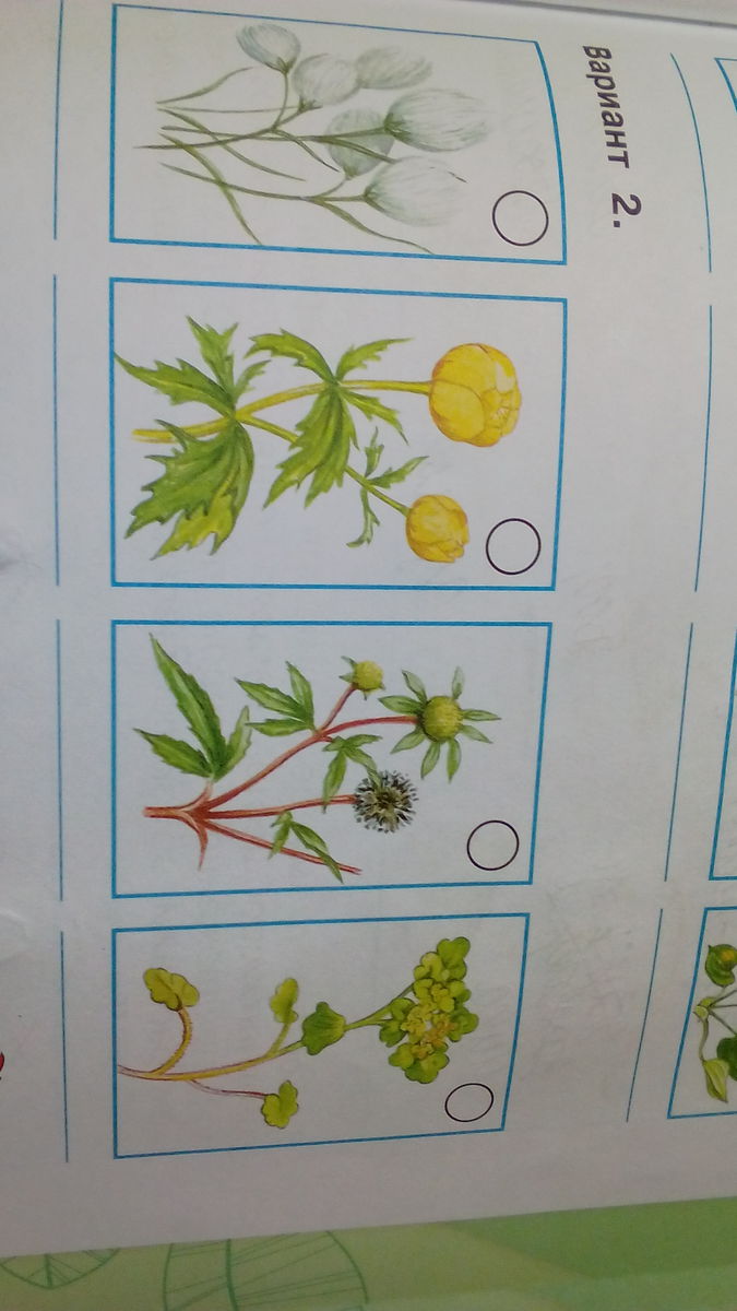 пушица, купальница, череда трёхраздельная, селезеночник обыкновенный.