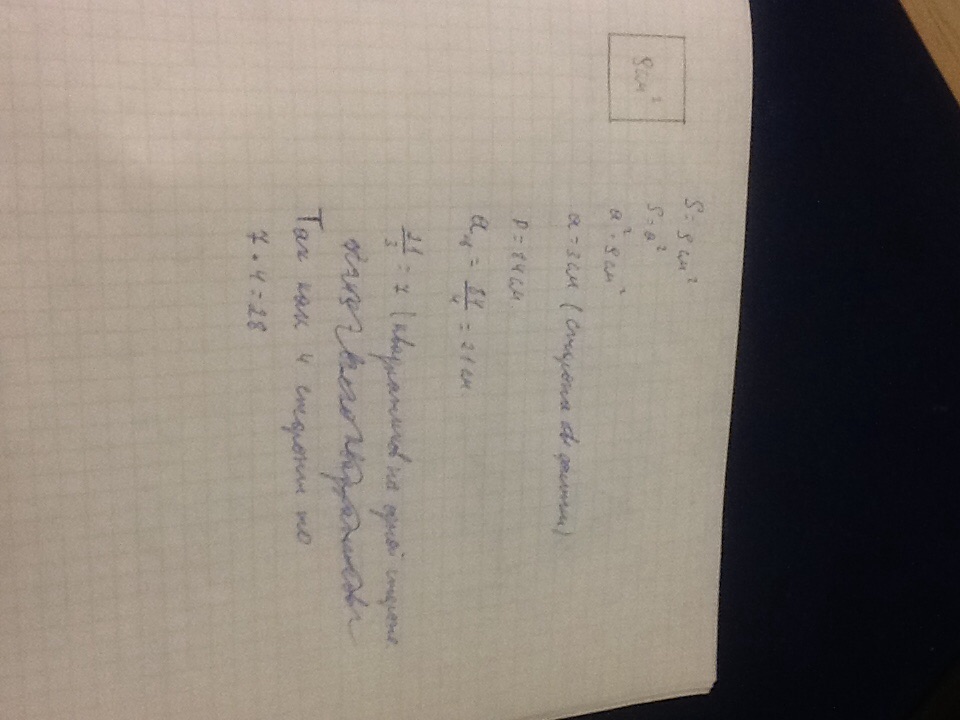 площадь картонной квадратной фишки 9см2 из нескольких фишек выложили квадрат по периметру (как рамка) причем внешний периметр квадрата оказался равен 84см сколько для этого понадобилось фишек?
