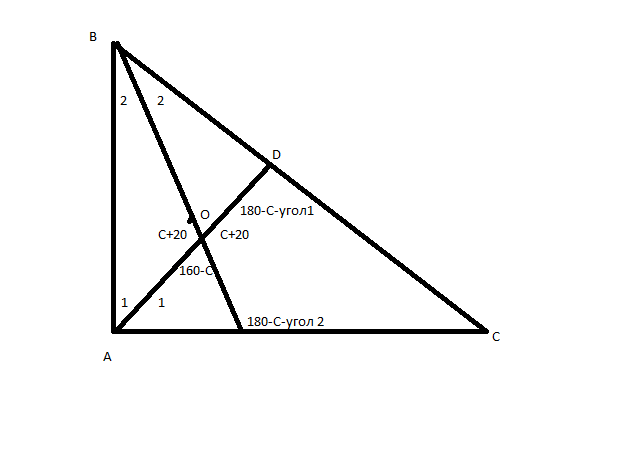 В треуг AOB: угол1+угол2=180-(С+20) 20=180-С-20