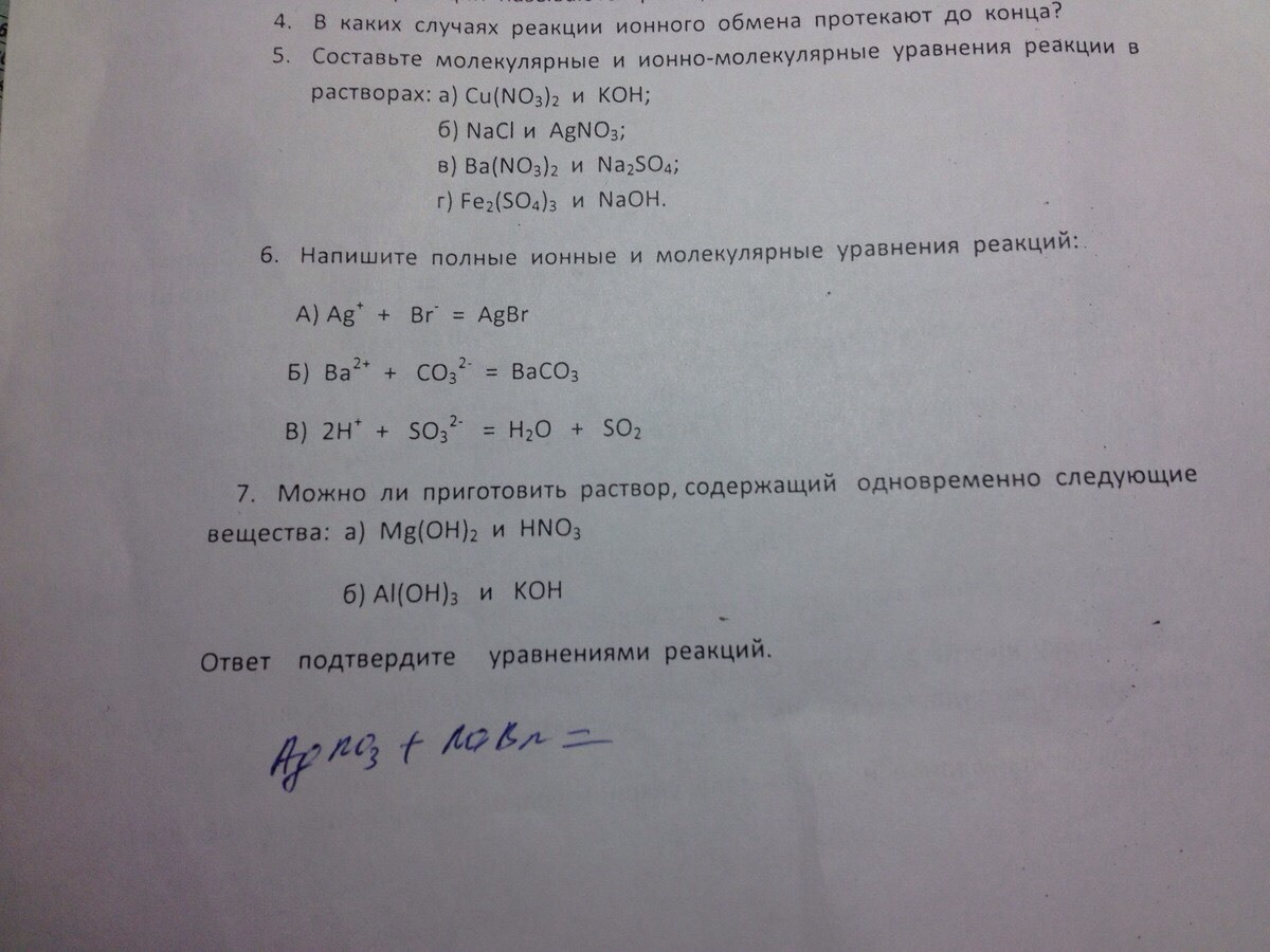 5) Сu(NO3)2 + 2KOH = Cu(OH)2 + 2KNO3