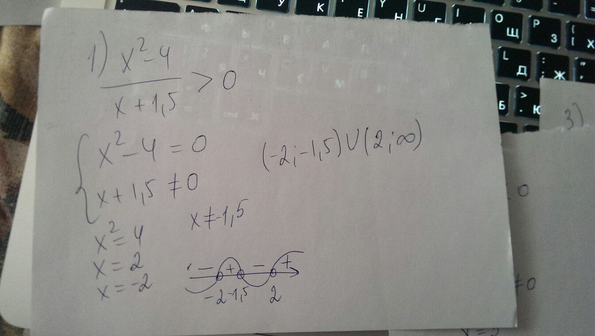 решите неравенства 1)x^2-4 дробь x+1,5>=0