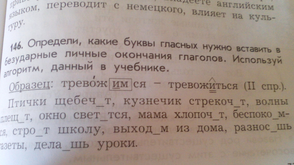 Определи, какие буквы гласных нужно вставить в безударные личные окончания глаголов.