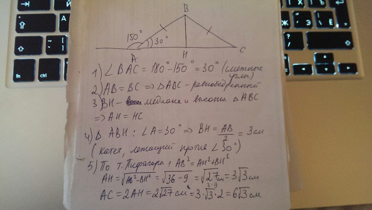 равен 150°. Найдите длину стороны АС.