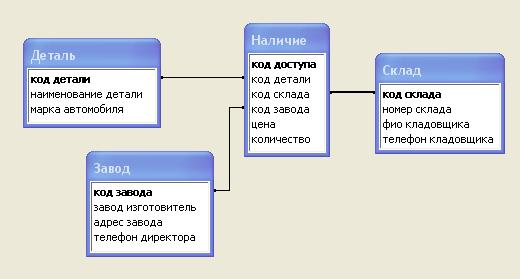 Помогите создать схему данных бд «Наличие запасных частей к автомобилям» с ключами, пожалуйста.