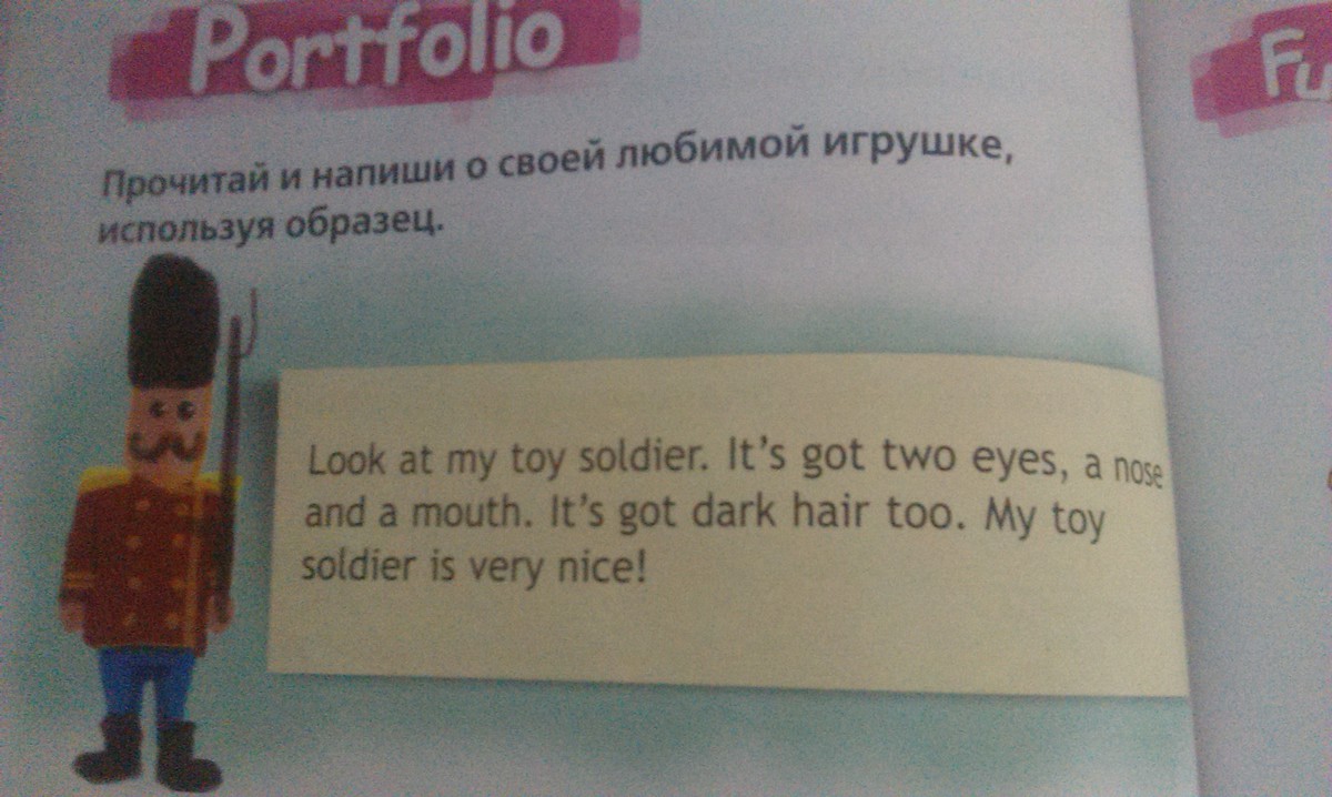 Посмотри на моего плюшвого медведя, у него два глаза нос и рот, мой плюшевый мелведь хороший.