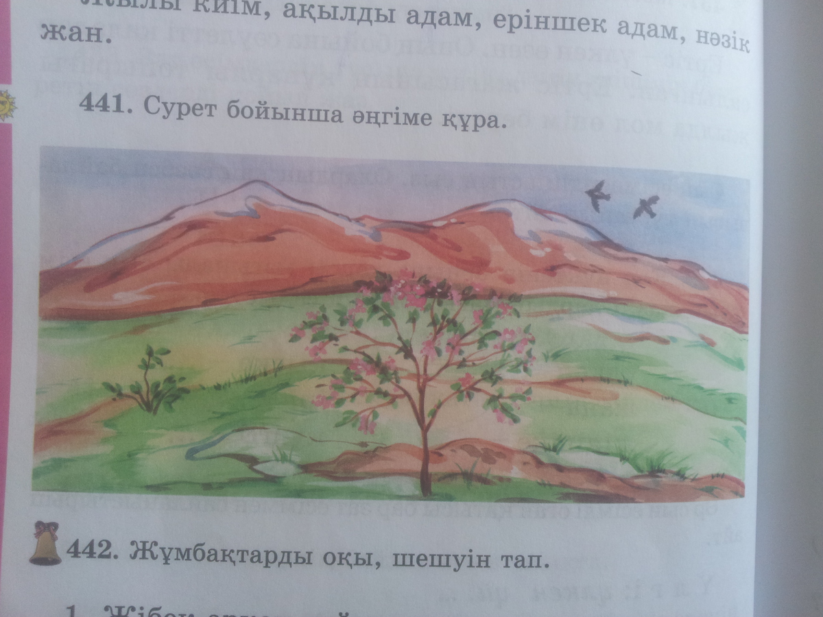 мен суретте табигатты корип турмын суретте тау,гулдер,агаштар жане т.б оте коп.кустар ушып жур табиагар ар адамга керек