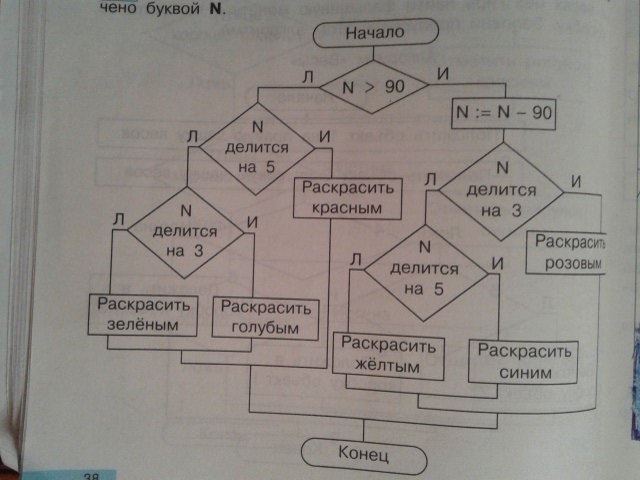 ДЛЯ КАЖДОЙ ЧАСТИ РИСУНКА ОГРАНИЧЕННОЙ ЗАМКНУТОЙ ЛИНИЕЙ ВЫПОЛНИ АЛГОРИТМ СТОЯЩИЙ ТАМ ЧИСЛО ОБОЗНАЧЕНО БУКВОЙ N