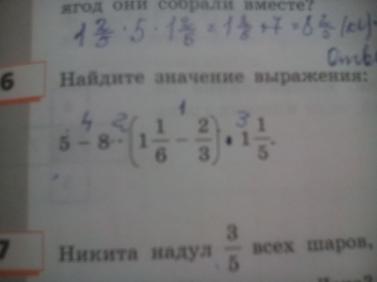 5-8*(1 1/6-4/6)+1 1/5=5-8*3/6+1 1/5=5-4+1 1/5=5-5 1/5=-1/5