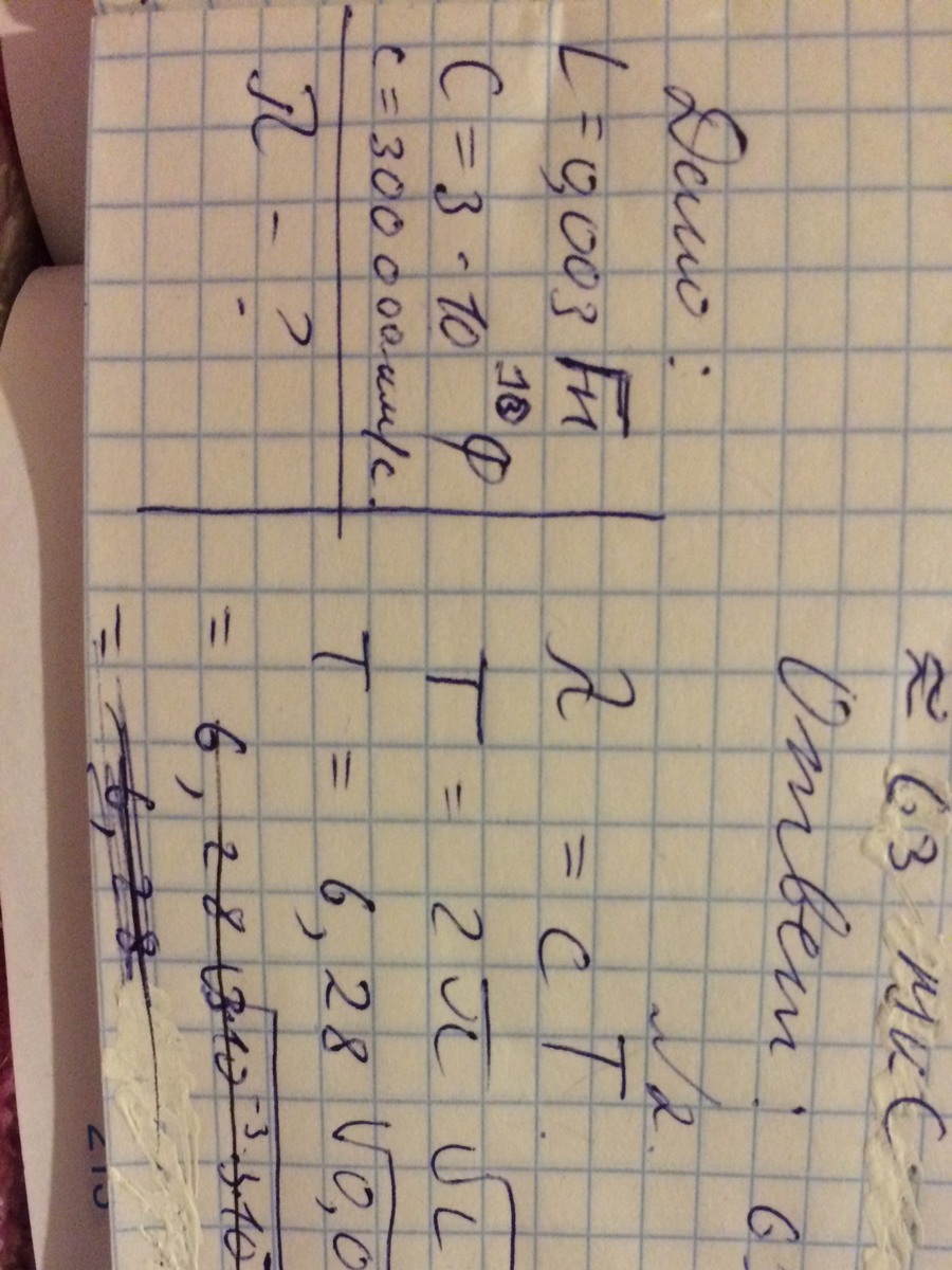 T=2π√LC и Т= λ/с, λ = (2π√LC) *c