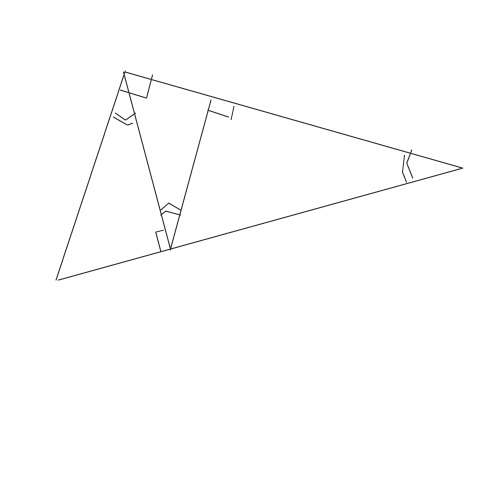 Нарисуйте прямоугольный треугольник. Из вершины прямого угла опистите высоту к гипотенузе. Получите 2 подобных треугольника из одного ( исходный не считаем). Затем из основания высоты ( из вершины прямого угла треугольника, который получился при делении) проведите высоту к его гипотенузе ( она же катет исходного треугольника).