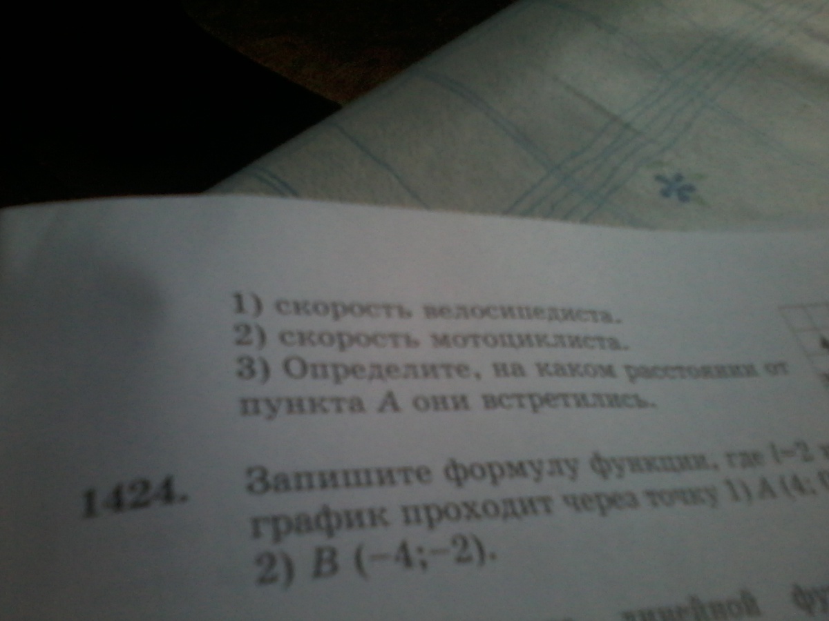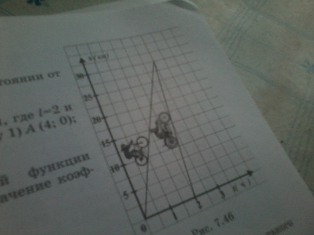 Из пункта а выехал велосипедист спустя 2 часа после выезда велосипедиста и того же пункта а выехал мотоциклист мотоциклист через час догнал велосипедиста 1 по графику найдите скорость велосипедиста мотоциклиста определите на каком расстоянии от пункта а они встретились