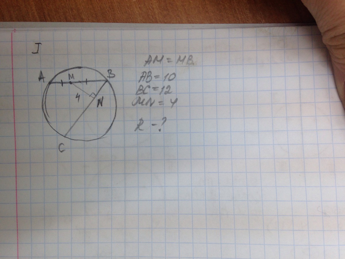 Если радиус 5,то диаметр 10,но тогда как может быть длина отрезка ВС ,точки которого лежат на окружности равна 12 ?