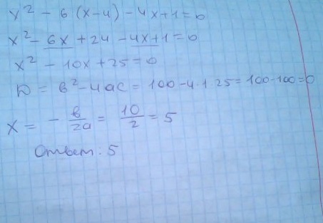 Сначала раскрываем скобки, потом приводим подобные слагаемые, у нас получается квадратное уравнение, находим дискриминант, он равен нулю, значит, один корень, находим корень по формуле.