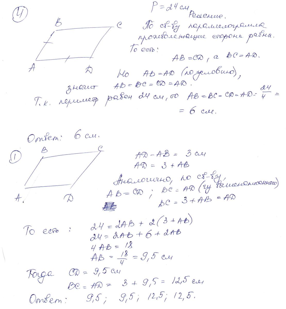 Надите стороны параллелограмма ABCD,зная,что его периметр равен 24 см. помогите напишите пожалуйста полным решение ДАНО,РЕШЕНИ,ОТВЕТ помогите