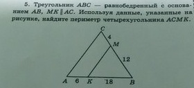 КМС - равнобедренный, т.к. подобен АВС (по накрест лежащим углам при пересечении 2 параллельных прямых секущей)