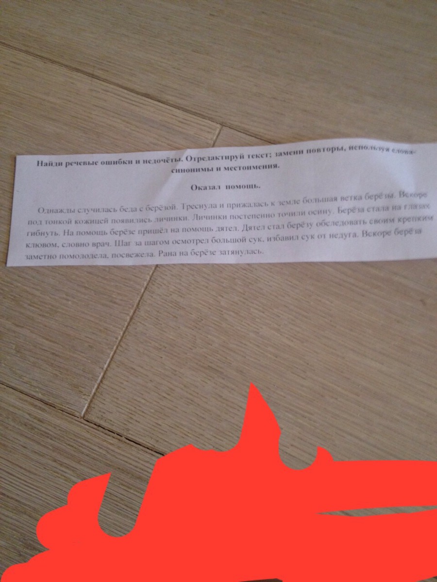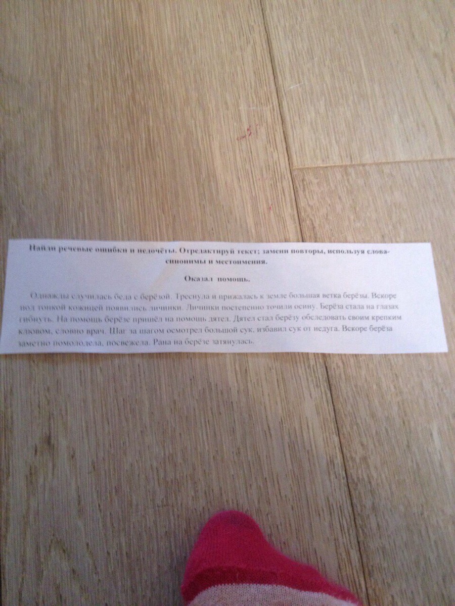 Однажды случилась беда с березой. Треснула и прижалась к земле большая ветка дерева. Вскоре под тонкой кожицей появились личинки. Они постепенно точили деревце. Березка стала на глазах гибнуть. На помощь березе пришел дятел. Птица стала обследовать березу своим крепким клювом, словно врач. Шаг за шагом осмотрел большой сук, избавил его от недуга. Вскоре береза заметно помолодела, посвежела. Рана на дереве затянулась.
