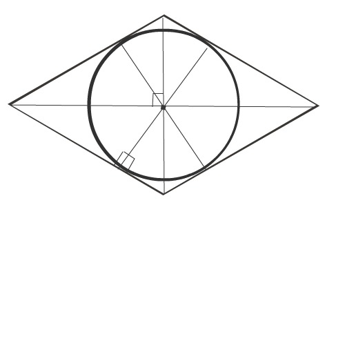В любой ромб можно вписать окружность. Центр вписанной в ромб окружности - точка пересечения его диагоналей.