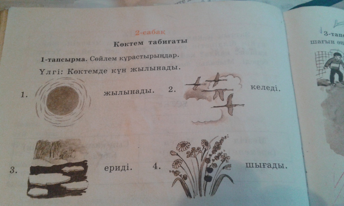 коктемде кун жылынады.кустар ушып келеди.Кар ериди.Гулдер шыгады.
