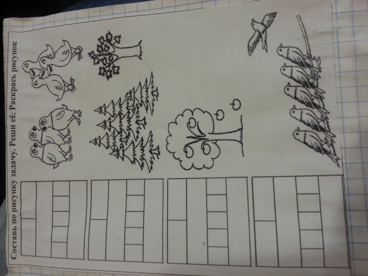 4) 6 птиц сидело на проводе. 1 улетела. сколько осталось.