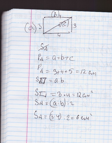 5 см., основание = 3 см. P тр-ка=a+b+c, 4+3+5=12 см. P прям. = (a+b)*2, (4+3)*2= 14 cм. S прям.=(a*b):2,(3*4):2=6 см. это мы нашли а S тр-ка как написать?
