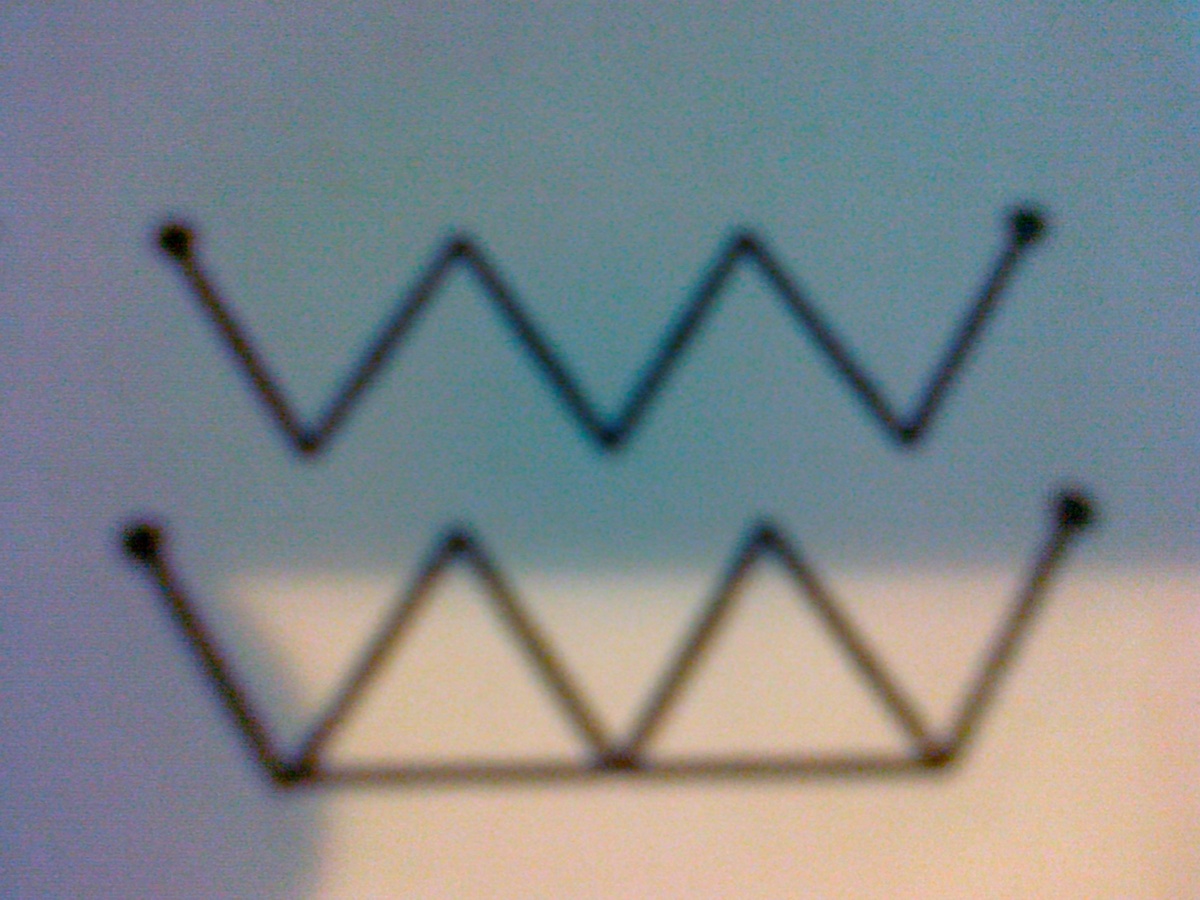 Шесть одинаковых проводников соединены так, как показано на верхнем рисунке. Затем к имеющимся проводникам добавляют ещё два таких же проводника, как показано на рисунке. Определить отношение сопротивлений между концами цепей до и после добавления перемычек.