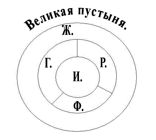 Волшебная страна состоит из Голубой,Фиолетовой,Розовой, Желтой стран и Изумрудного города.Известно , что Голубая ,Фиолетовая и Розовая страны имеют общую границу с остальными 4 частями. Желтой страна и Изумрудный город не имеют между собой общей границей , причем Желтая страна окружена великой пустыней, отделяющей Волшебную страну от остального мира. Нарисуй схему этой Волшебной страны, если каждая из стран является целым куском.
